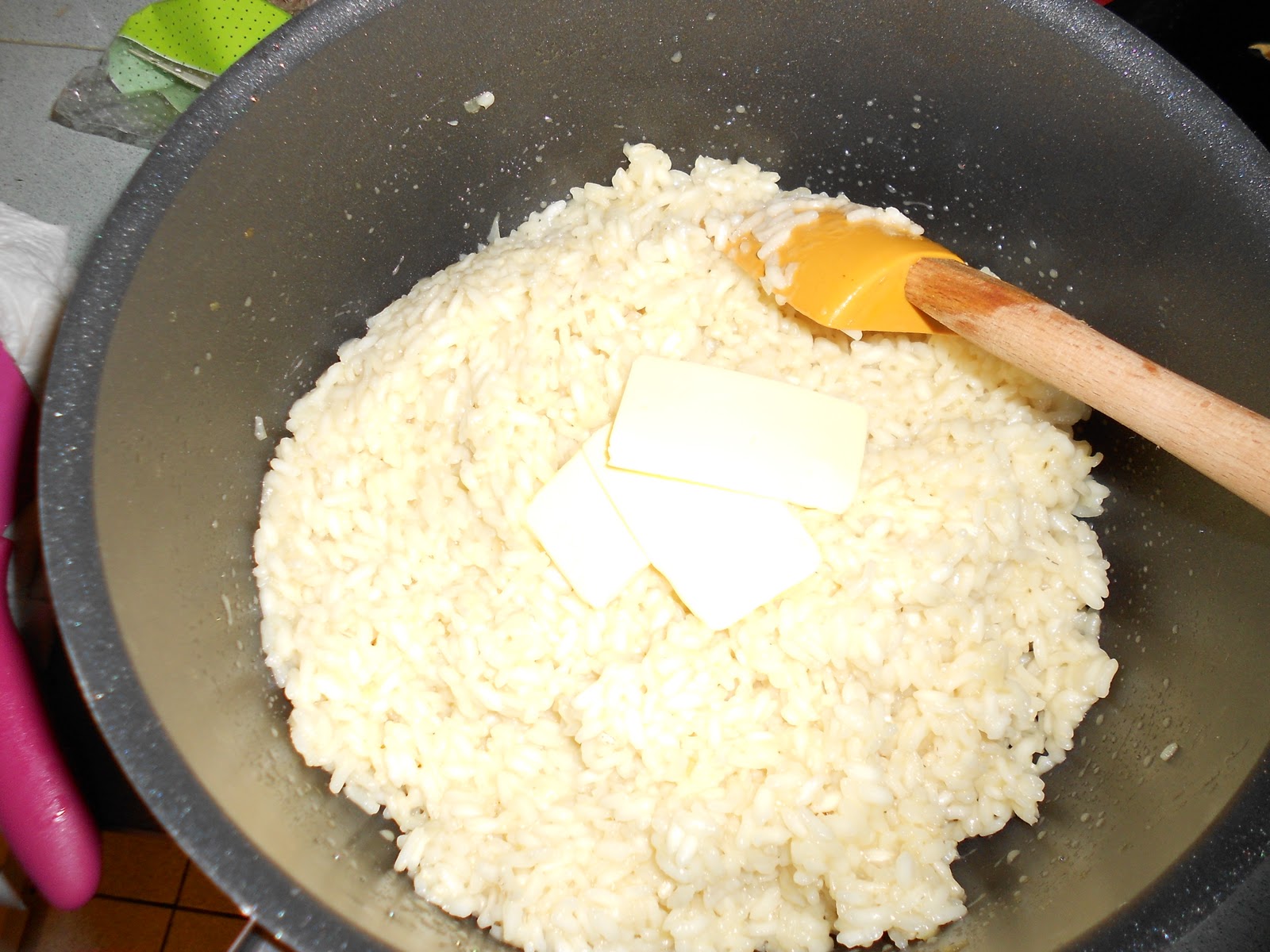 -When your risotto is tender, remove from the heat and mix in the butter and parmesan cheese. Season with salt.