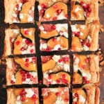 Realistically, anything with puff pastry and melted cheese is a serious crowdpleaser, but this tart takes things a step further. The buttery, flaky pastry is topped with creamy fontina and goat cheese, sprinkled with fresh thyme, and then decorated with thinly sliced prosciutto and crescents of roasted acorn squash. Once the tart is perfectly puffy and golden brown, it gets finished with more crumbled goat cheese and lots of ruby red pomegranate arils. It’s sweet and savory MAGIC.