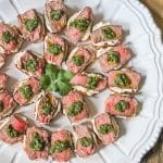 This is SO delicious! It’s savory, tangy, herby- and so easy to make. I’ve made these for a couple of years now, and my kids, (now 8 and 10), have always devoured them. Looks very fancy for how simple it is. I also used store-bought pesto from TJs that I already had, as a shortcut.