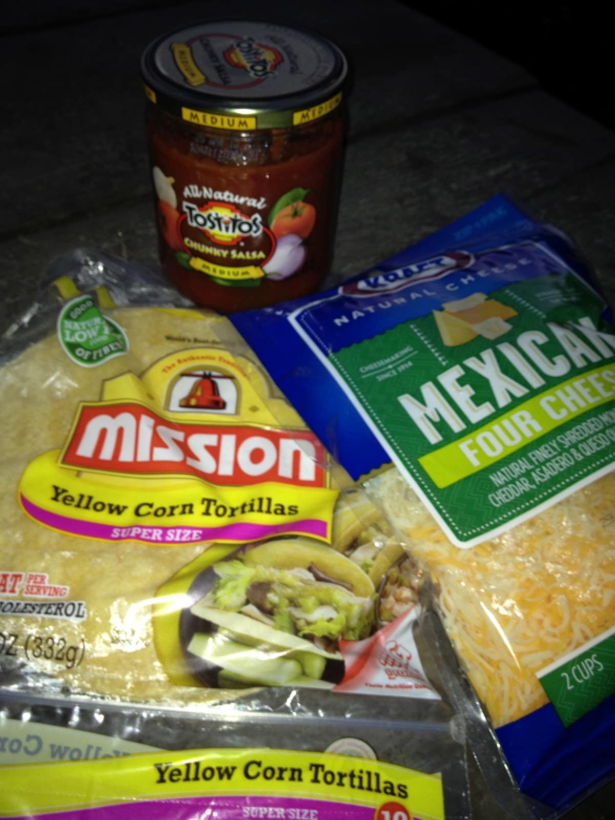 - Mexican blend cheese and pre-made salsa optional but recommended