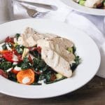 All you need to do is heat a little olive oil in a saucepan, add the chicken, and cook it for about a minute. Then you lower the heat, cover the pan, and let it cook for 10 minutes. Turn off the stove and leave the chicken to hang out, covered, for another 10 minutes. BOOM, you’re done. The chicken breasts actually poach from the inside out in their own juices, keeping them incredibly moist (sorry) and flavorful.