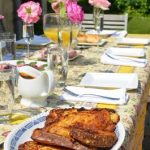 The easiest way to spruce up a spring table is to put a few brightly colored flowers into champagne glasses. Voila! Instant minimalist chic. If you don’t have easy access to flowers don your blacks and take a midnight skulk into your neighbor’s garden with some scissors. (We swear we didn’t do this…)