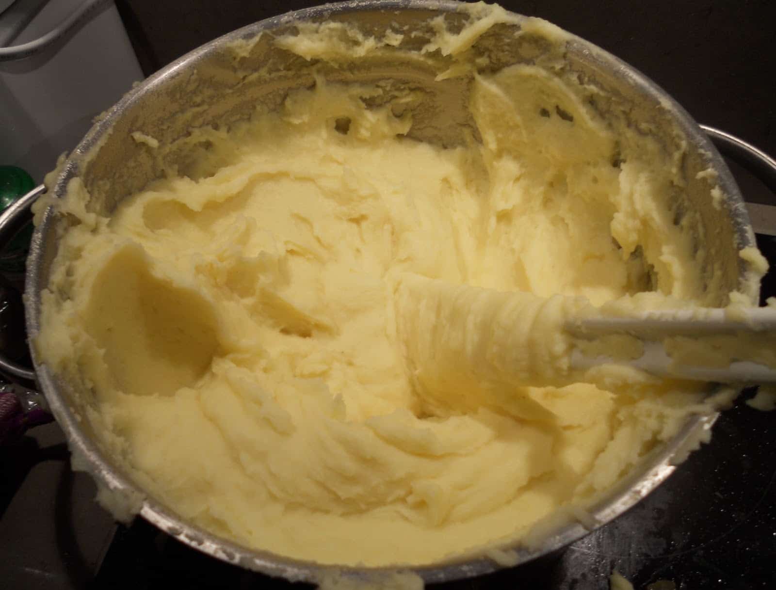 -Heat your milk with a couple pinches of salt and a pinch of nutmeg. As soon as the milk is hot, incorporate it slowly into your potatoes. You may not need all of it, depending on the consistency you’re aiming for!