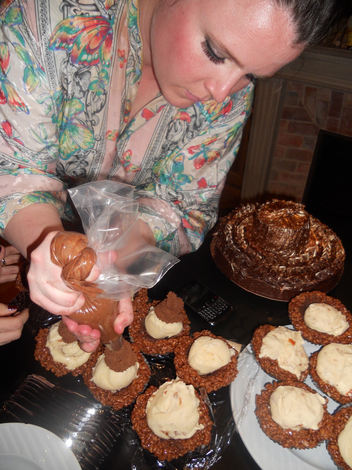 *This is by far the hardest part of the recipe-you cannot let the mixture get too firm. I would say it should stay in the fridge for no more than 40 minutes or else it will get too hard. It should be a very thick substance but not “hard.”