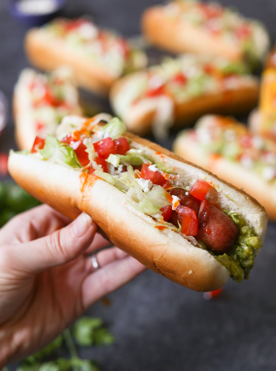 p.s. The street corn guacamole is delicious insanity. It’s loaded with grilled sweet corn, lime, cotija, cilantro, and chili powder, and the sweet and savory flavors literally explode in your mouth. Even if you hate hot dogs(??!!), I highly recommend making this guac for dipping, tacos, burgers, sandos, toast, etc. Seriously.