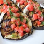 - Drizzle the basil vinaigrette on top and serve your grilled eggplant masterpiece at room temperature.