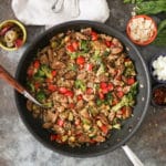 Duuuude this recipe is the bomb. I make this at least once a month. It’s so fresh and flavorful! The balsamic vinegar zip and Italian seasonings with the creamy goat cheese and crunch of almonds is … *chef’s kiss* amazing. Love that I can get lots of veggies in here (sometimes will add a few different colored bell peppers rather than zucchini since my husband isn’t a fan). Highly recommend y’all try this one out!