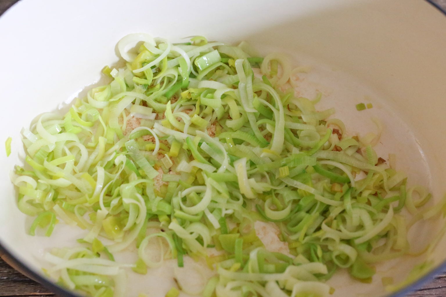 - 2 cups sliced leeks white and light green parts only (about 3 leeks), or 1 medium yellow onion, chopped