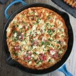 Anyhoo, one of my New Year’s “intentions” is to clean up my act, organize my closets and the kitchen, and start “cleaning up as I go.” It’s been okay so far. One of the ways that I plan to cut down on mess is by using fewer pots and pans in the evenings when I’m less likely to want to spend hours cleaning up after myself. Enter: “Shakshuka” Egg-White Frittata with Turkey Sausage.