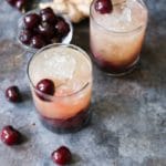 - Gently muddle the cherries in a cocktail glass (I like a rocks glass for this), just until they’re slightly broken down and have released some of their juices. Fill the glass with crushed ice.