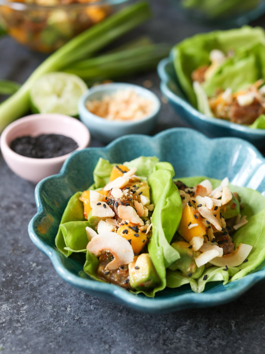 The memory of that poké haunted me in the best possible way, and I felt the urge to recreate it at home ASAFP, which I did in the form of these Spicy Mango-Avocado Poké Lettuce Wraps….