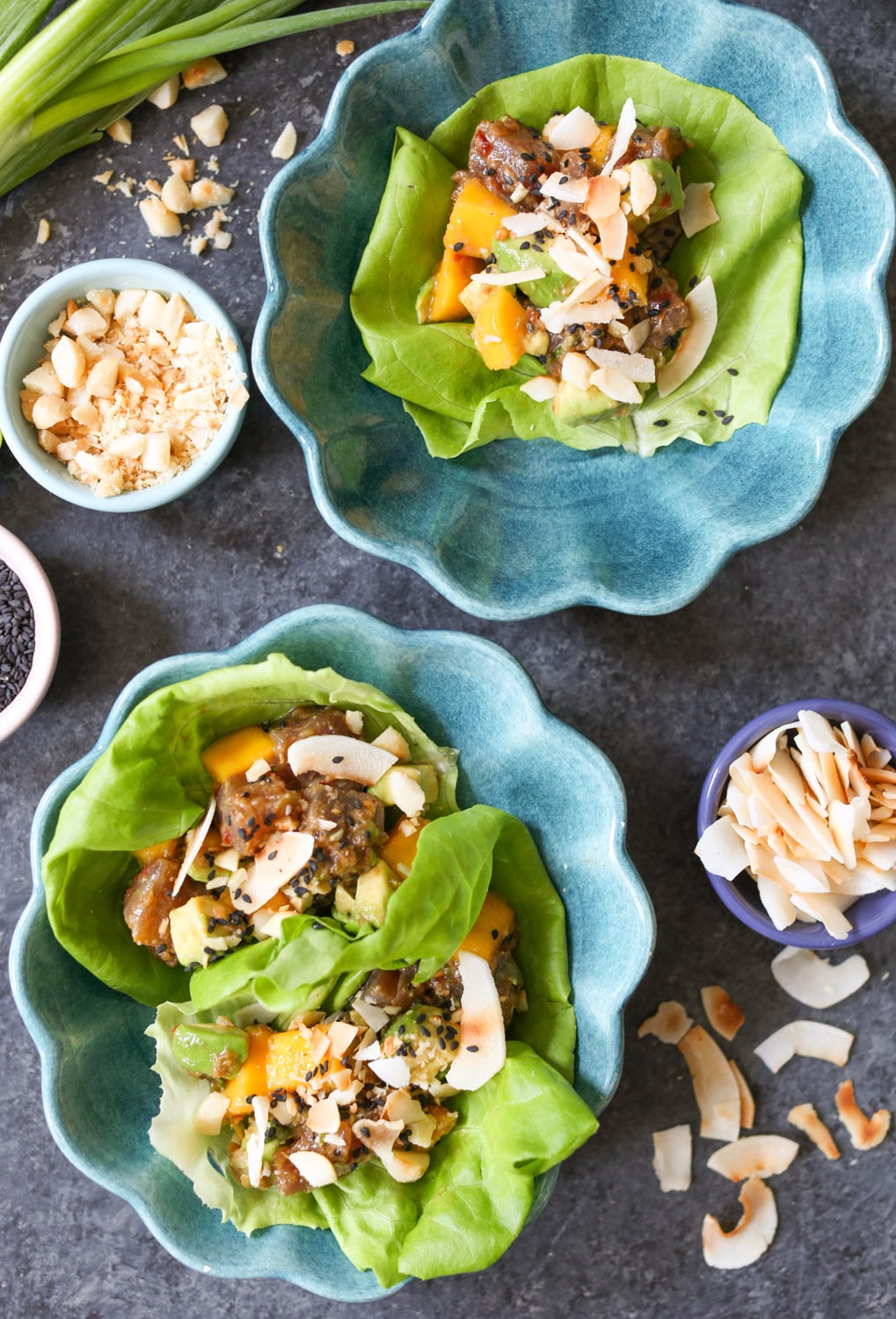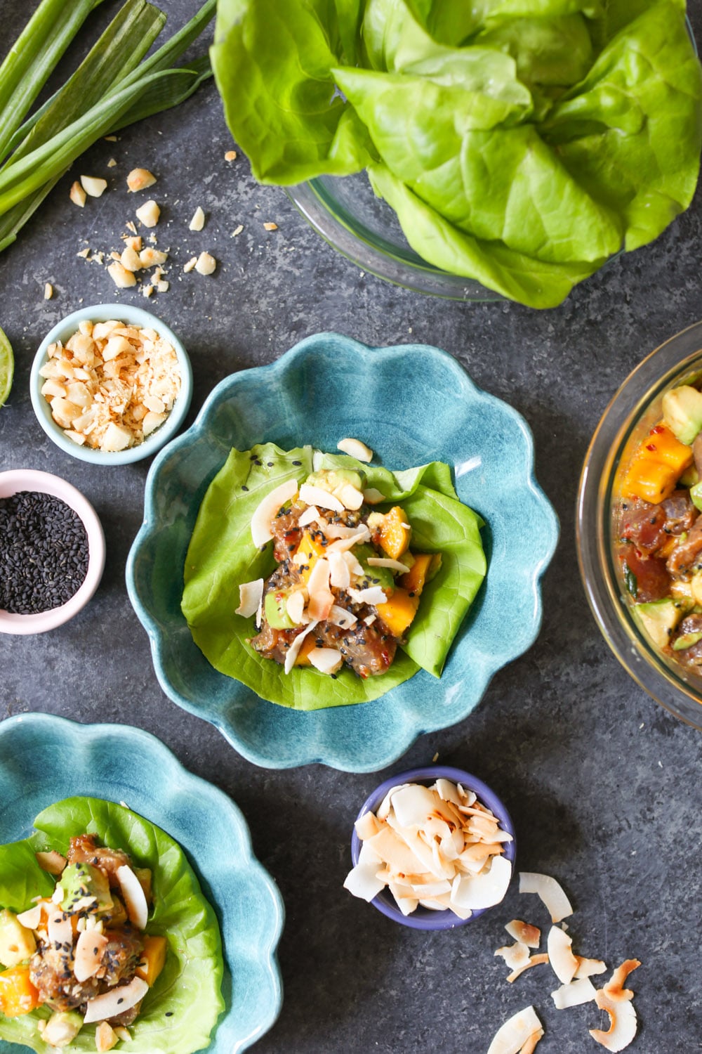 Speaking of you doing you, there are endless ways to modify this recipe. Not into getting handsy with your food? Eat it bowl-style over rice, salad or noodles. I also like the idea of serving it on rice crackers or taro chips as an appetizer/small bite for warm weather soirées. Tuna haters can easily swap ahi for salmon, snapper, and even tofu. You can also play with your fruit choice—pineapple, orange, or grapefruit would all be great subs for mango. Honestly, you can’t really go wrong.