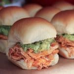 Spicy Pulled Chicken Sliders with Bacon-Queso Guacamole