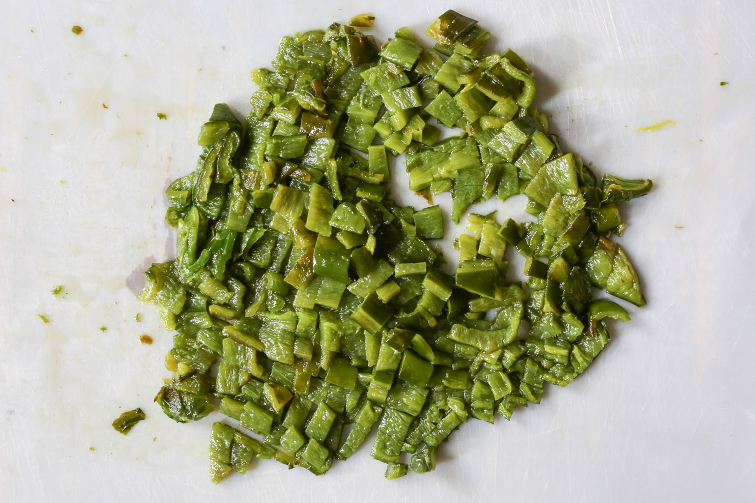 - Meanwhile, char the poblanos. Pre-heat the broiler on high. Place the peppers on a baking sheet and broil for 10-15 minutes, turning the peppers every few minutes, until softened and lightly charred in spots. Let the peppers cool to room temperature, then remove their skins. (You should be able to easily peel the skin off easily with your hands!) Slice the peppers in half, and remove and discard the seeds and stems. Finely chop the peppers and briefly set aside.