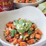 First, there’s the fluffy cilantro-lime quinoa with all its glorious superfood qualities. Next, we’ve got antioxidant-rich sweet potatoes, roasted until tender with just the right amount of smoked paprika and cumin. Then comes the festive summer vegetable mix, studded with sweet corn and black beans and seasoned to perfection with your favorite Mexican spices, chopped chipotles in adobo, and fresh lime juice.