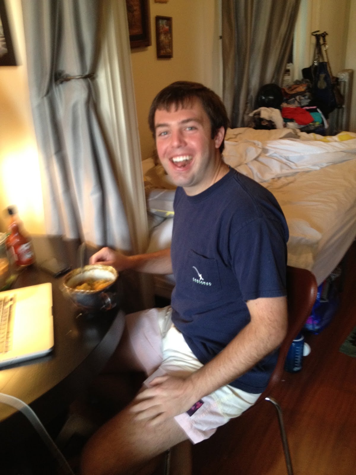 Logan recently told me that he (usually) eats a really healthy breakfast when he’s up at Columbia. Because Logan’s definition of “healthy” remains slightly off the mark, I asked him exactly what he was eating. He said that he just eats a “small plate of fruit.” While I was proud of him for putting actual fruit into his body, I calmly explained that fruit salad on its own isn’t necessarily the best breakfast choice. Fruit has a lot of sugar and almost no protein, which he needs to keep him full and energized until lunch.