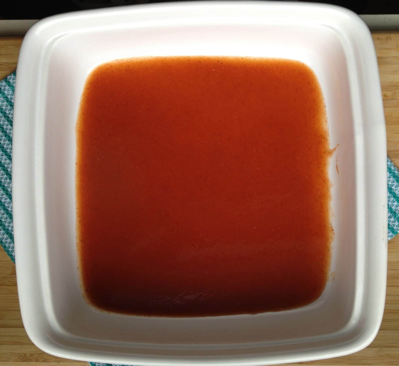 - Pour ½ cup of your enchilada sauce into a 9 x 9 inch baking dish.