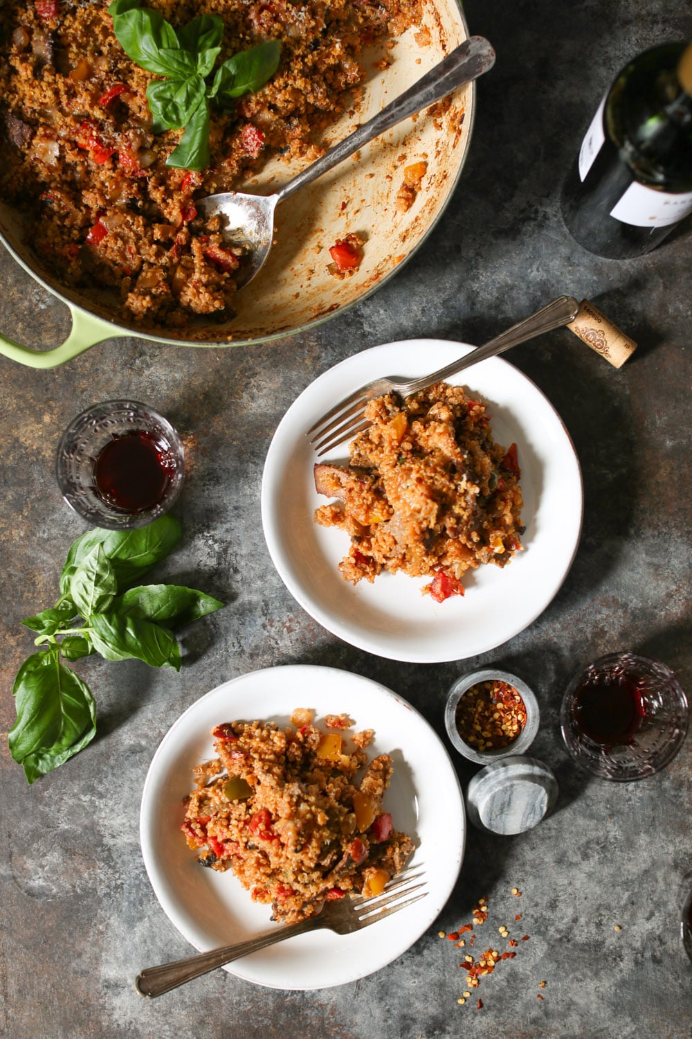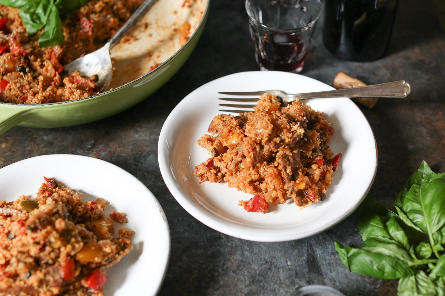 I know I say this about every quinoa bake, but this one might be my best yet? Loaded with thinly sliced steak, sautéed onions, bell peppers, portobellos, marinara, and cheese, it’s got all the beloved flavors of Philly’s dankest hybrid sub. My live-in cheesesteak connoisseur (aka Logan) has now eaten it for three straight days (last night he ate it as a “side” with his chili), and I don’t think I’ve heard such ecstatic grunting since the Cheeseburger Quinoa Bake’s 2015 debut. Great success.