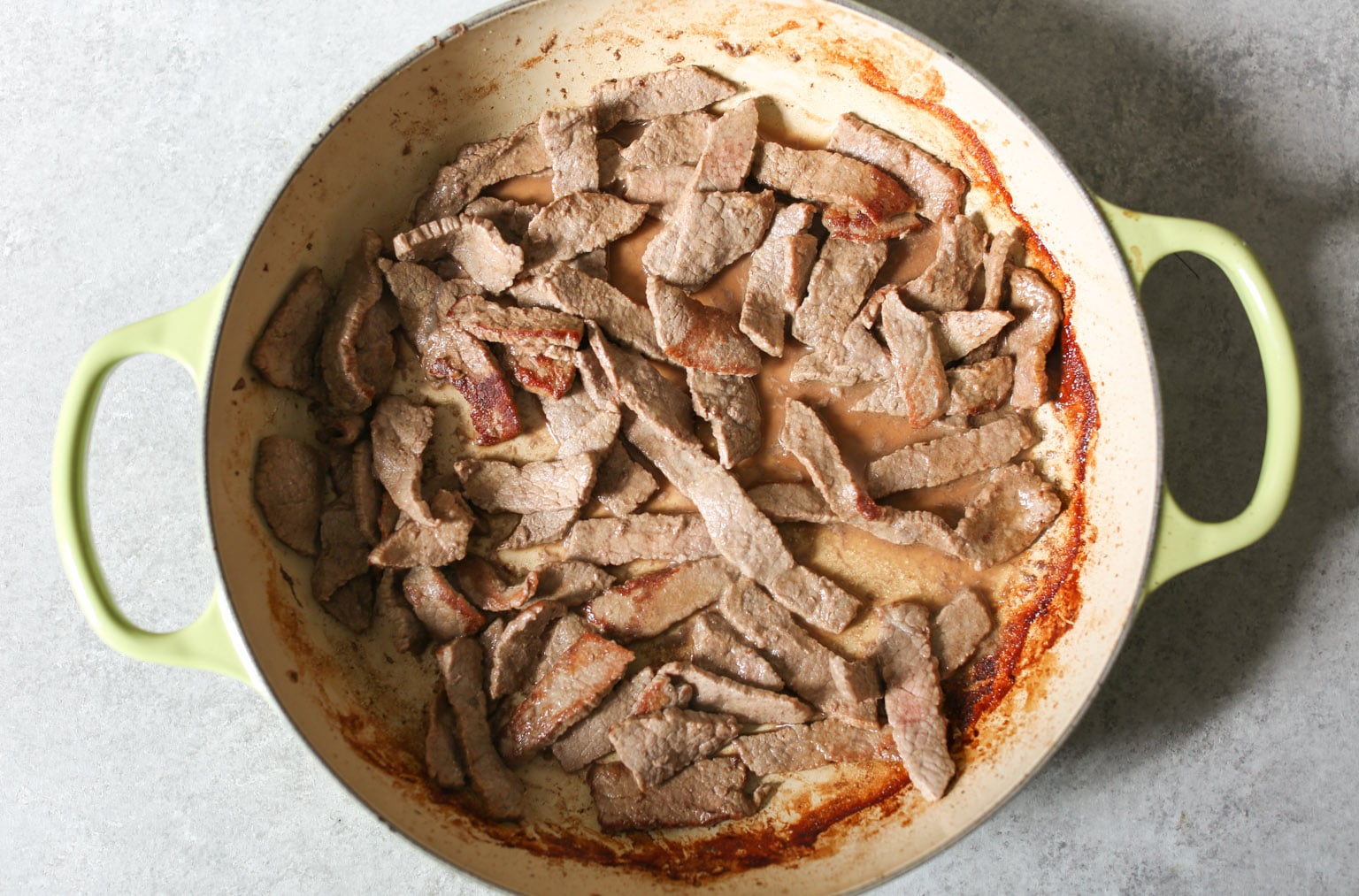 - Next, cook the steak. Increase the heat to medium-high and add 1 tablespoon of olive oil to the pan. When the oil is hot and shimmering, add the steak to the pan and season with a pinch of salt and freshly ground pepper. Cook for about 2 minutes, stirring constantly and breaking it up into smaller pieces with a spatula, until no longer pink. Using a slotted spoon or tongs, transfer the steak to a bowl or plate and set aside.