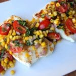- Serve your grilled halibut topped with cherry tomato and corn salsa. Dive in, dudes. You’re such a catch.