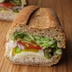 Turkey Italian Subs are an ideal everyday lunch as well as a great choice for a casual get-together. Make a few extra large subs, slice them into 3-inch pieces and let guests serve themselves. You should also take these subs on all of your picnics this summer. Just bring the dressing in a small plastic container and then add it to the sandwiches when you’re ready to eat to keep them from getting soggy in your cooler/beach bag/backpack. Turkey Italian Subs aren’t just for lunch, though. They make a great simple dinner, especially if you throw the turkey and provolone half of the sando under the broiler for a minute to melt the cheese.