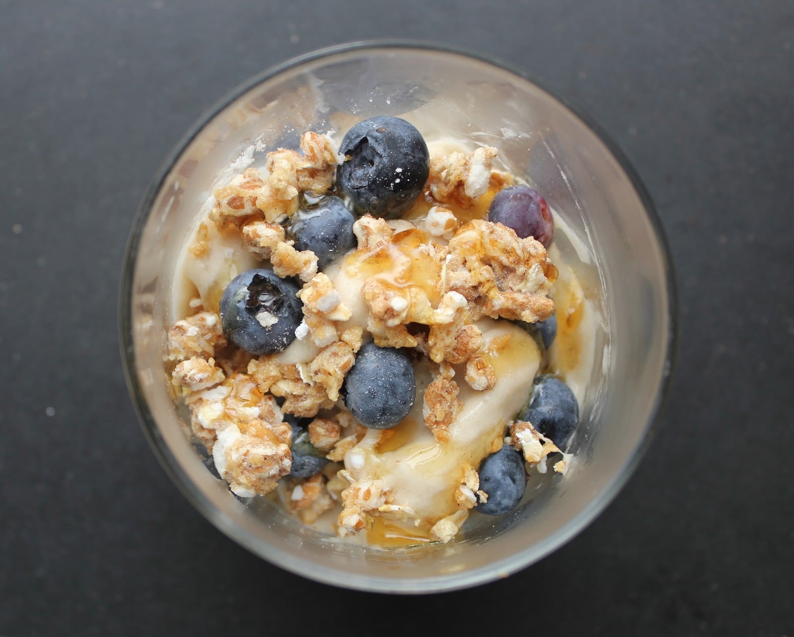 -When smooth, spoon your “ice cream” into cups and top with your favorite healthy toppings. Boom. Guilt-free sundae, dudes.